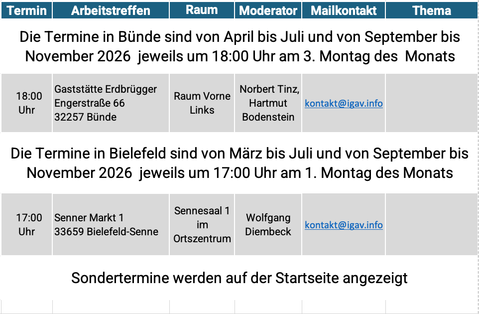 Sie können sich auch über den Link "Kontakt zur IGAV" zum Treffen anmelden