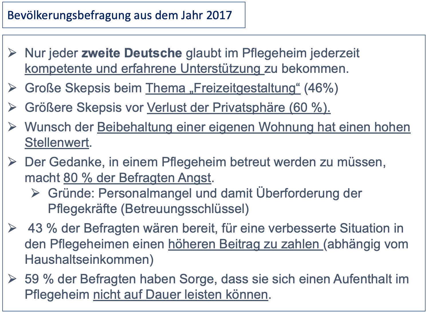 Der Zeitraum von 30 Jahren macht allerdings deutlich, dass es egal war, welche Partei politische Verantwortung im Land hatte. Werden die Sorgen der älter werdenden Menschen von der Politik ignoriert?